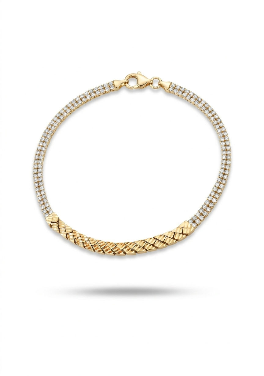 צמיד זהב 14k משובץ בזרקונים וחיתוכי לייזר
